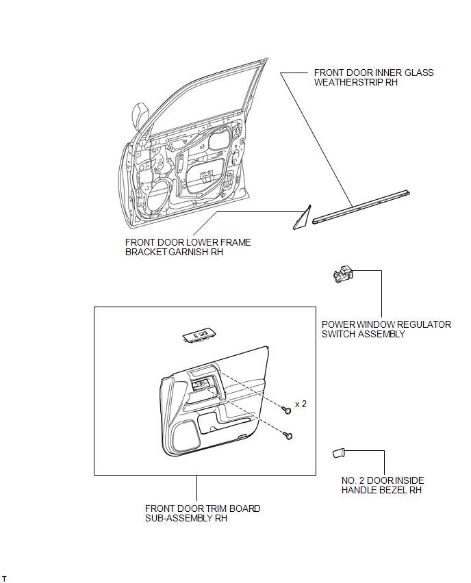 2. REMOVE NO. 2 DOOR INSIDE HANDLE BEZEL RH