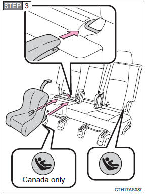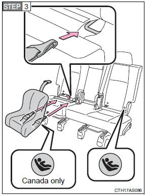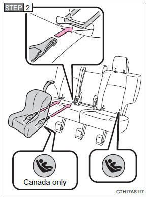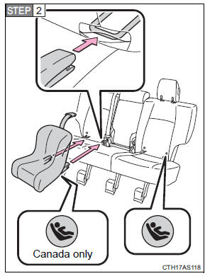 Latch the buckles onto the LATCH anchors. If the child restraint has a top tether strap, the top tether strap should be latched onto the top tether strap anchor.