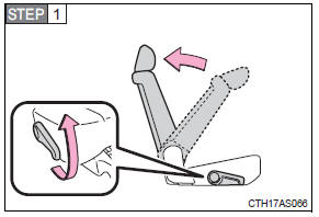 Fold the seatback while pulling the seatback angle adjustment lever. Return the seatback and secure it at the first lock position.