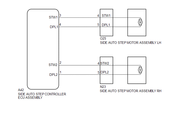 (a) Disconnect the O25*1 or N23*2 side auto step motor assembly connector.