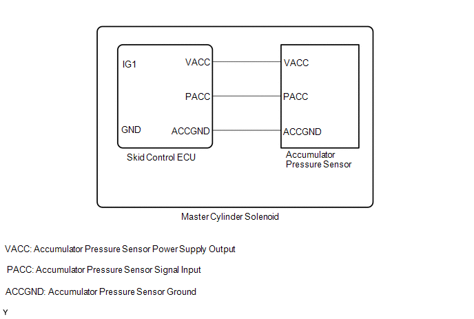 The accumulator pressure sensor is connected to the skid control ECU in the master cylinder solenoid.
