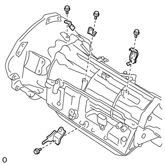 (b) Remove the 4 bolts and rear engine mounting insulator from the transmission.