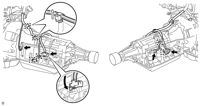 (b) Disconnect the park/neutral position switch connector, transmission wire connector and 2 speed sensor connectors.